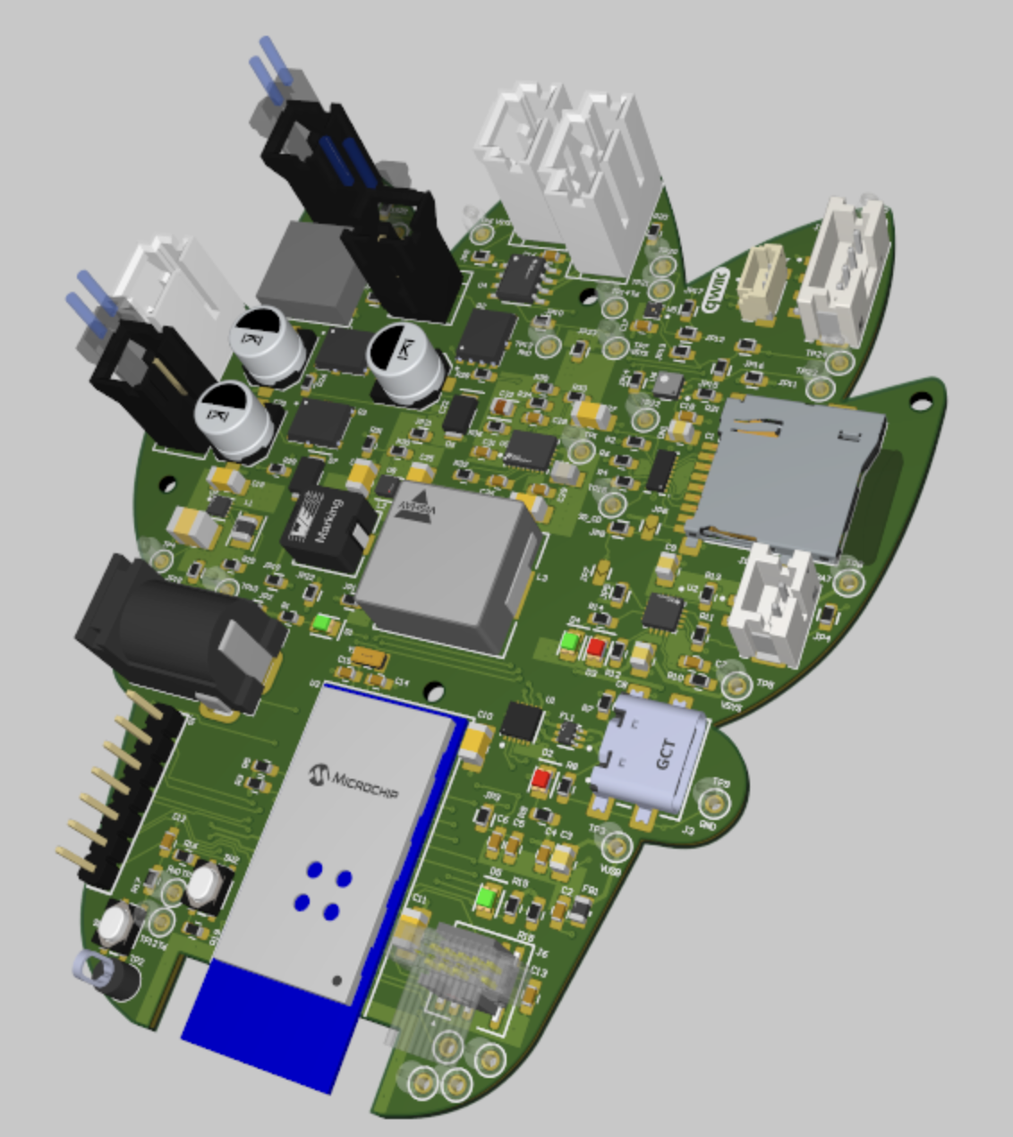 HRS 01: The SAMW25 microcontroller shall be used for processing, Wi-Fi communication, and interfacing with peripherals via I2C, SPI, UART, and GPIO.
