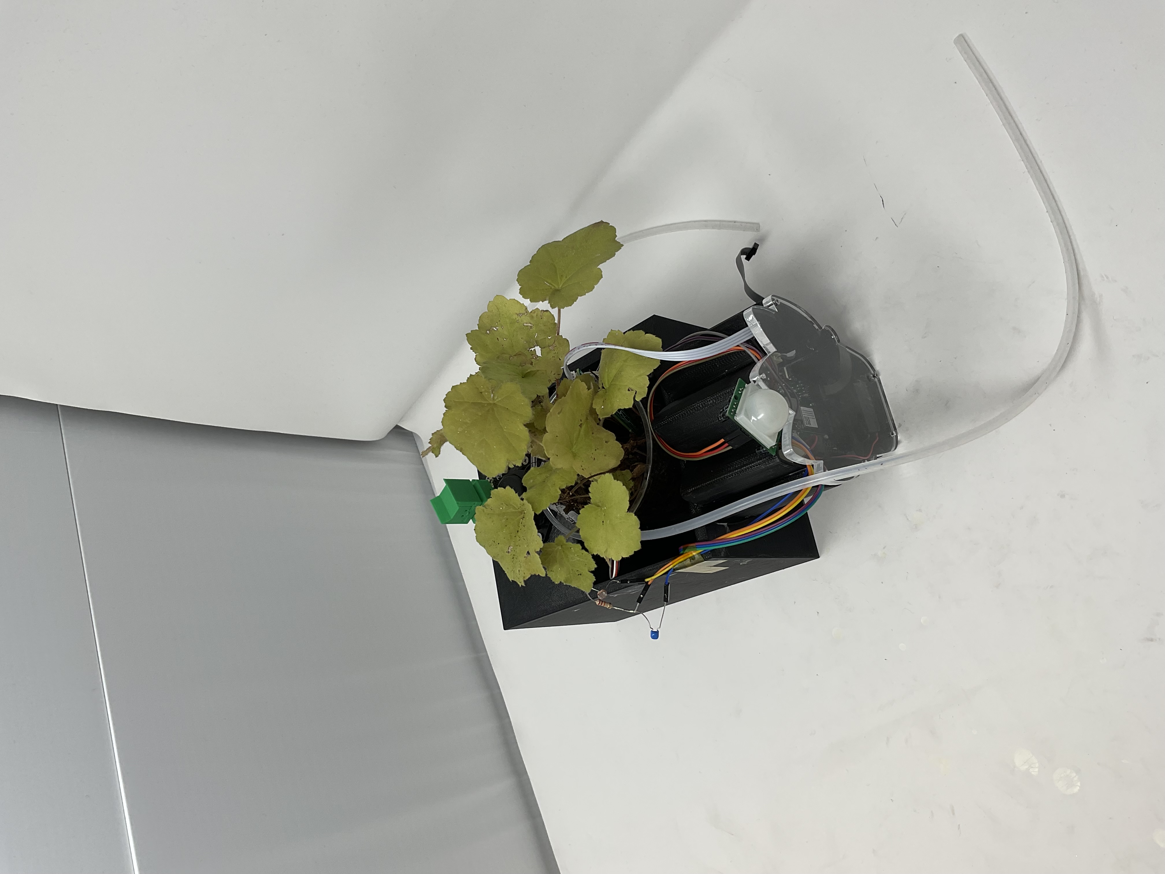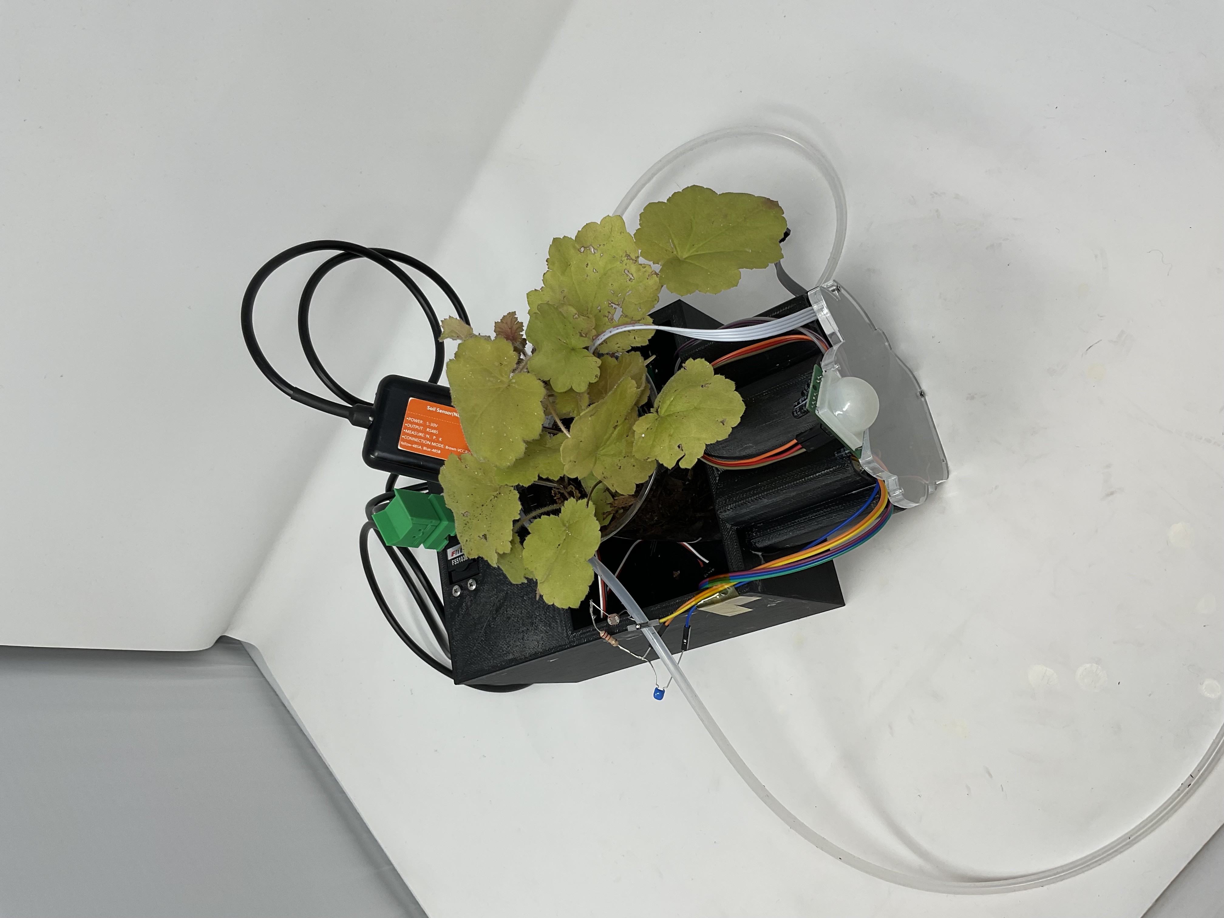 The hardware integrated soil moisture sensors, temperature and humidity sensors, a light sensor, motion sensor, air quality sensor, and a soil NPK sensor. Actuators such as a water pump and motion deterrent system ensured automated responses. The system also featured a microSD card for efficient data logging.